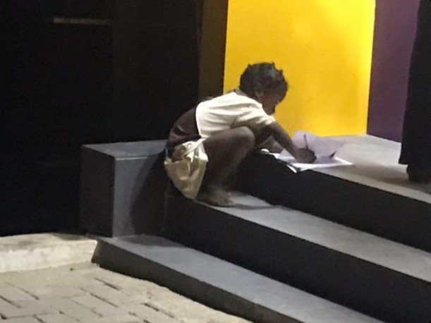 She is using the ATM Gallery light to do her homework. My respect goes to her determination to make it in life. Let it go viral. #Deledetermination.”