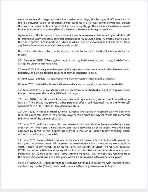 In her words: “D’banj gained access into my hotel room at past midnight while I was asleep. He violated and raped me”.