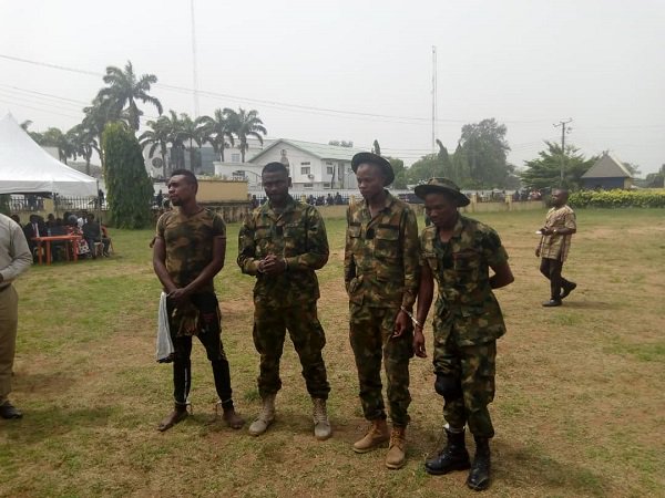 Parading the suspects, who were fully dressed in Military fatigue, during a Peace Parley for candidates, the Commander 34 Artillery Brigade Obinze, Brigadier General H. I Bature, disclosed that fake soldiers have infiltrated the state to cause chaos during the general elections.