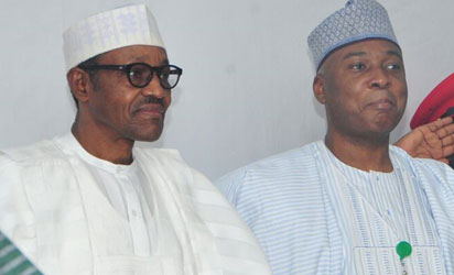 Senate President, Dr. Bukola Saraki and President Muhammadu Buhari at the APC NEC Meeting ...