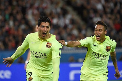 However, Barcelona again undid the PSG defence midway through the second half, Suarez eliminating Luiz and Marquinhos as he cut into the area from the right before holding off Maxwell and prodding past the despairing Sirigu at his near post.