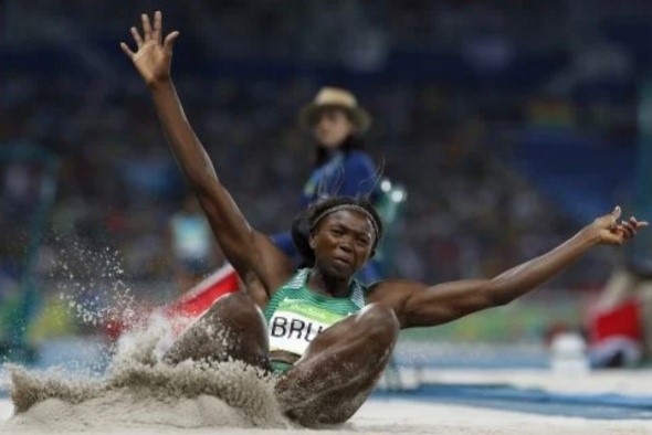 Brume put herself in a commanding position for the gold medal after her fourth attempt gave her a new Commonwealth Games record of 6.99m.
