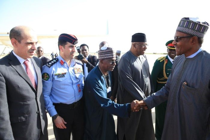 Others on his entourage were Minister of Foreign Affairs, Geoffrey Onyeama; the National Security Adviser, Maj. Gen. Mohammed Babagana Monguno (rtd) and Minister of the Interior, Lt.General Abdulrahman Dambazzau.