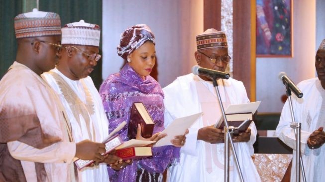 The swearing-in ceremony took place at the Council Chamber, State House, in Abuja on Monday.