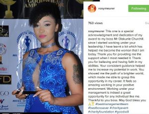 The same award the controversial actress that was allegedly accused of causing the marital issue between Tonto Dikeh and ex-lover, Olakunle Churchill bagged some years back.