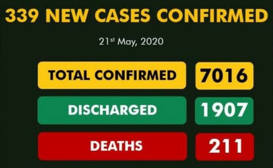 Coronavirus infections in Nigeria jumped to 7,016 with 339 new cases recorded on Thursday.