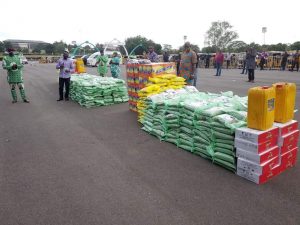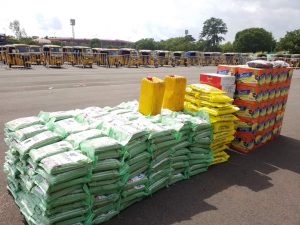Tricycle (Keke) riders operating in Enugu metropolis, on Monday, received food items donated by the Enugu State Government, in collaboration with the Federal Ministry of Humanitarian Affairs and Tertiary Education Trust (TET) Fund, amid excitement.