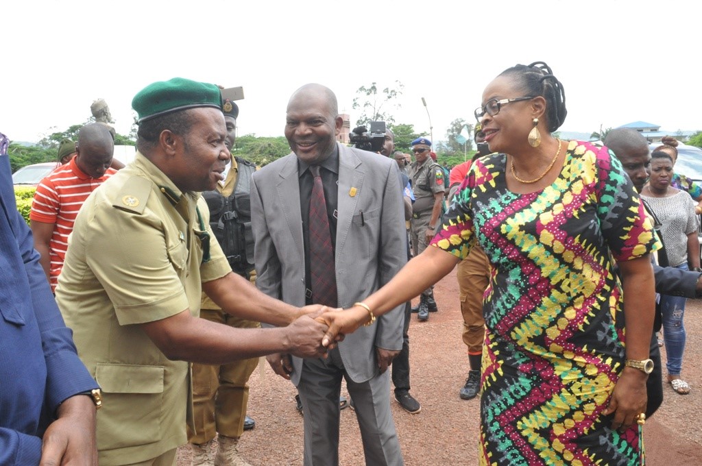 Deputy Governor of Enugu State, Mrs. Cecilia Ezeilo (right), being received by the representative of Controller of Prisons, Enugu, Achusi B.L, and the Commander of National Drug Law Enforcement Agency, (NDLEA), Dr. Anthony Ohanyere, during the commemoration of 2017 United Nations International Day Against Drug Abuse and Illicit Trafficking at the University of Nigeria, Enugu Campus, yesterday.