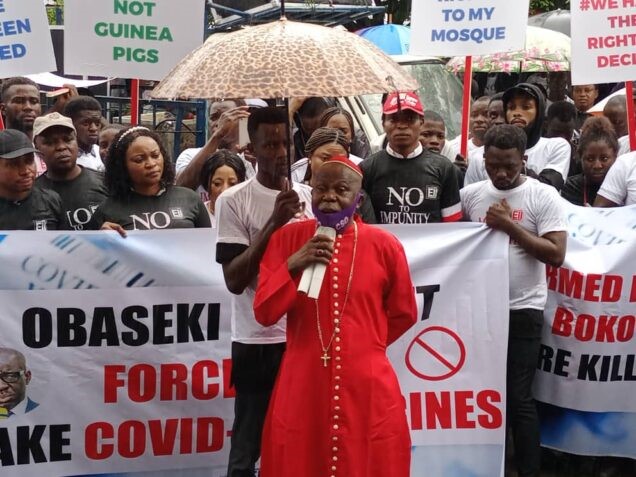 The no-COVID-19 vaccine, no-public gathering order of Governor Godwin Obaseki led to massive protest by civil society groups on Monday in Benin, Edo State.