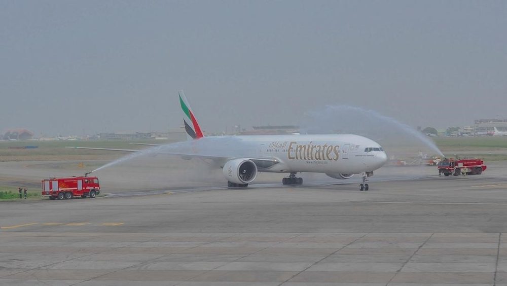 Both flights from Dubai, EK 785 to Abuja and EK 783 to Lagos, were welcomed to Nnamdi Azikiwe International Airport and Murtala Muhammed International Airport with water cannon salutes. Upon arrival, a cake cutting ceremony was also held between Emirates officials and the airport authorities to mark the resumption of operations.