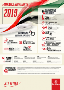 Remarking on 2019 milestones and highlights, Sir Tim Clark, President Emirates Airline said: “This was a year of recalibration in terms of our fleet and network plans, when it became clear that the A380 programme will cease. Emirates’ dynamic approach to capacity deployment – during the southern runway renovation at Dubai International, as well as in response to the capricious forces of politics and socio-economics throughout the year – demonstrated our agility and yielded results. We’ve also stayed focussed on delivering our “fly better” promise to customers through enhancing our product and service proposition at every touchpoint.”