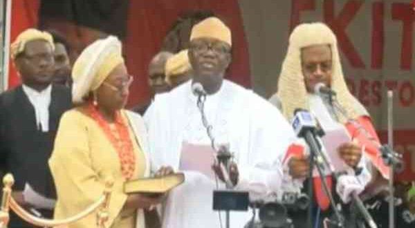 Former Minister of Solid Mineral, Dr. Kayode Fayemi, has been sworn-in as the Ekiti state governor by Justice Ayodeji Simeon Daramola, the Chief Judge of the state.