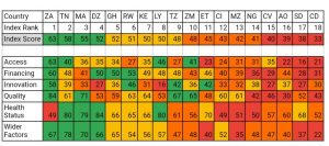 Countries included in the Index are Algeria, Angola, Cameroon, Côte d’Ivoire, Democratic Republic of the Congo, Ethiopia, Ghana, Kenya, Libya, Morocco, Mozambique, Nigeria, Rwanda, South Africa, Sudan, Tanzania, Tunisia and Zambia.