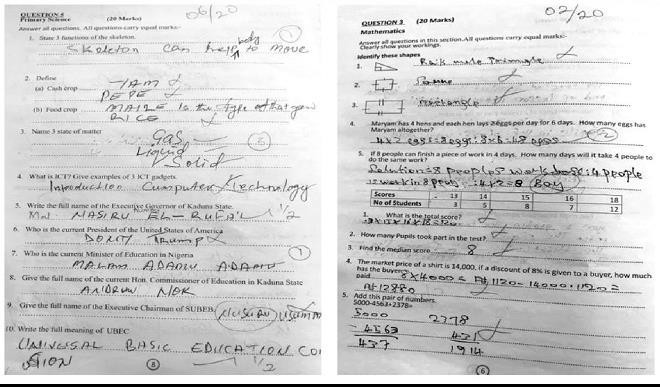 Governor Nasir El-Rufai yesterday shared some  scripts of the primary four competency test conducted for primary school teachers on his personal twitter handle.