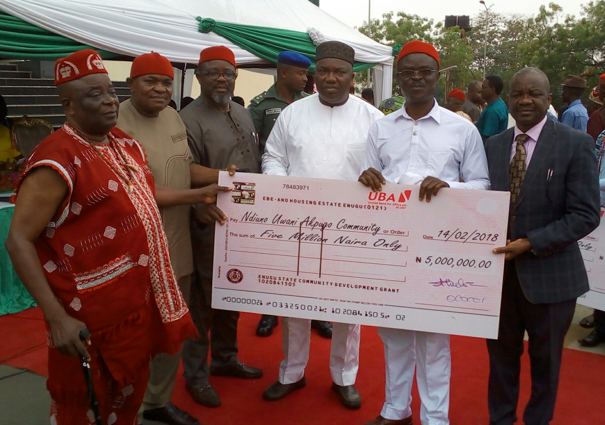 There was excitement in Enugu on Wednesday as Gov. Ifeanyi Ugwuanyi formally handed over N5 million cheque each to 118 autonomous communities that have so far fulfilled the requirements for the release of the fund, as the first tranche of the N10 million earmarked for every community in the state to execute one development project of their choice.