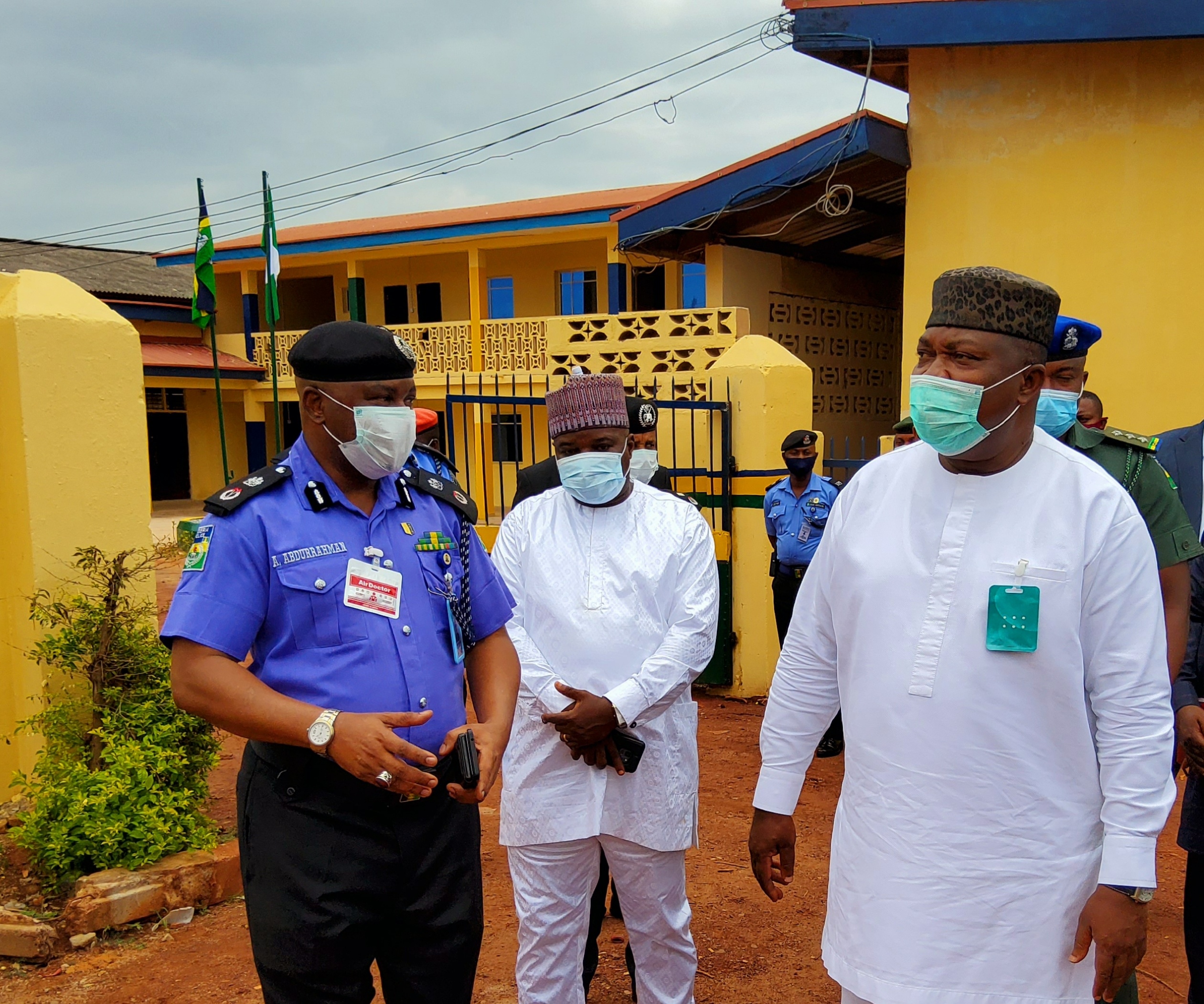 Governor Ifeanyi Ugwuanyi of Enugu State (right) with the State Commissioner of Police, CP Ahmad Abdurrahman (left) and the Assistant Commissioner of Police, State CID, ACP Fidelis Ogarabe, when the governor inspected the office complex of the newly created Force CID Annex Enugu for the South East zone, which was renovated and furnished by his administration, yesterday.