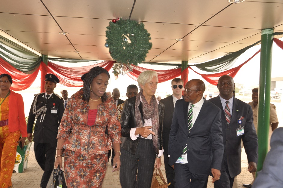 Lagarde was welcomed by the Minister of Finance, Mrs Kemi Adeosun and the Governor, Central Bank of Nigeria, Mr Godwin