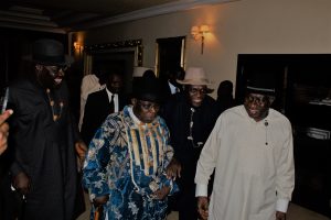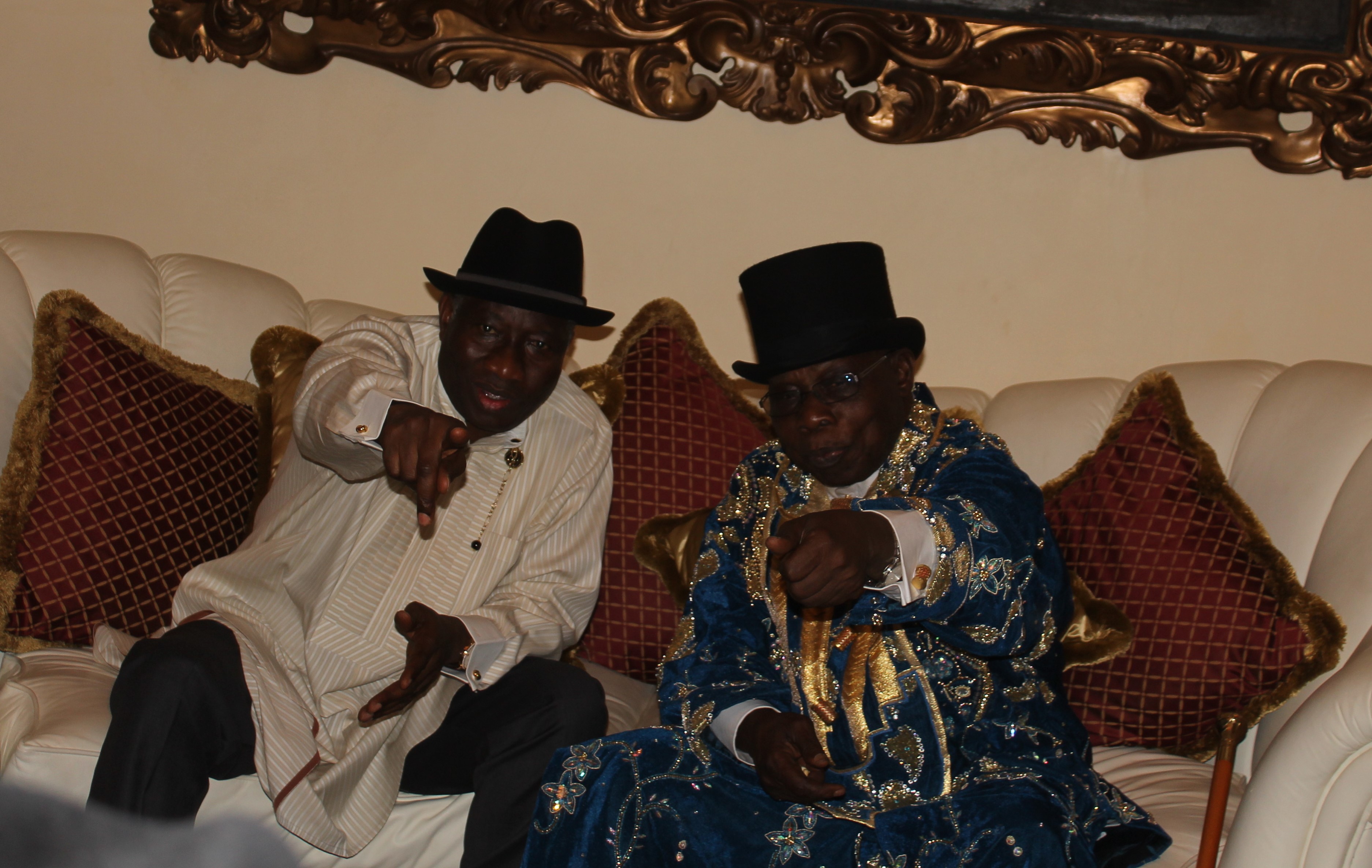 Former President Olusegun Obasanjo has visited former President Goodluck Jonathan at his home in Bayelsa State.