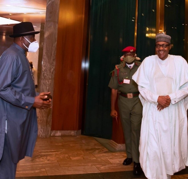 Former President, Dr. Goodluck Jonathan on Tuesday met behind closed-door with President Muhammadu Buhari at the State House, Abuja.