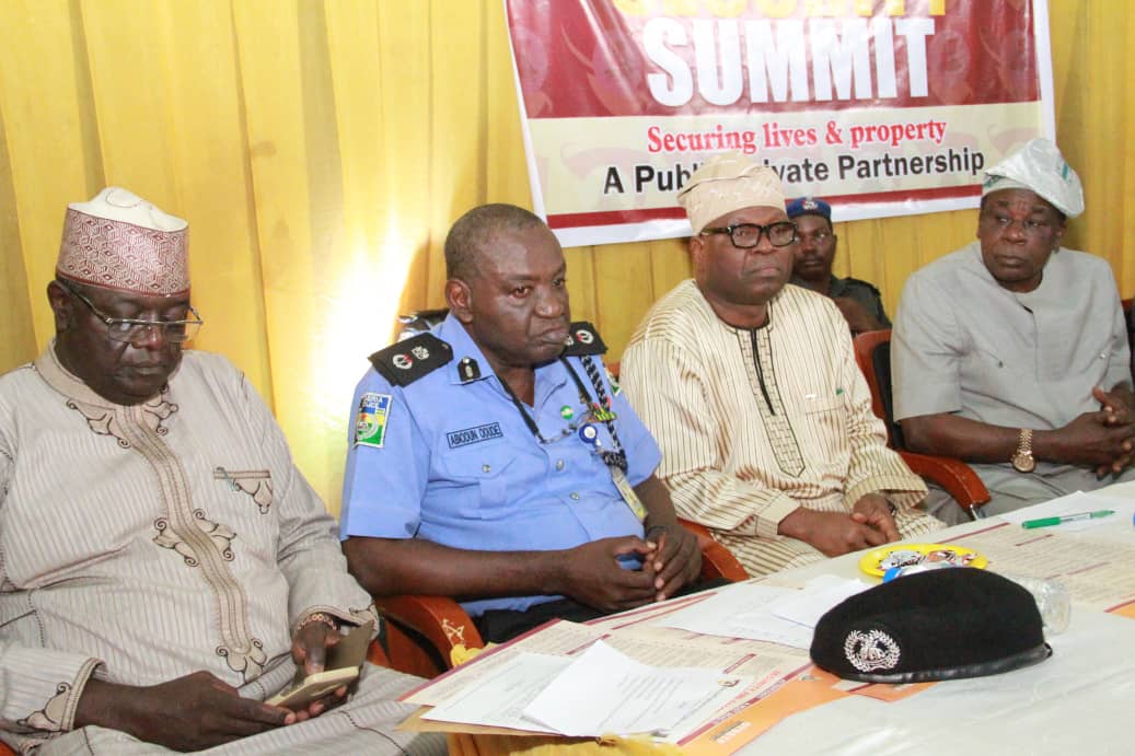 L-R: Director, Department of State Services, Oyo State Command, Mr. Abdullahi Kure; Commissioner of Police at the state command, Mr. Abiodun Odude; Secretary to the State Government, Mr Olalekan Alli; and Deputy Governor, Chief Moses Adeyemo, at a security stakeholders’ summit, in Ibadan… on Tuesday. Photo: Governor’s Office