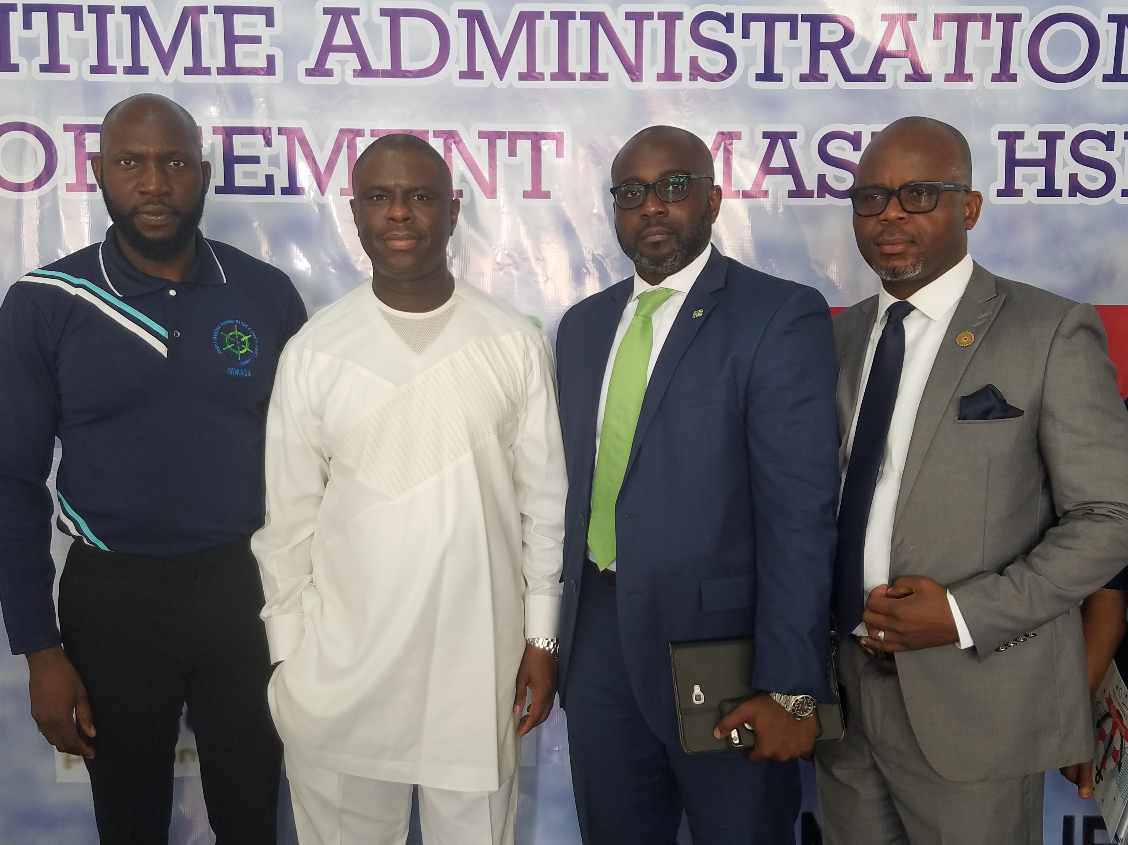 L-R: Eng. Fredrick Ugo, Head, Health Safety & Management of Nigerian Maritime Administration and Safety Agency (NIMASA); Dr. Dakuku Peterside, Director-General of NIMASA; Victor Amakwe, Group Head, Private Banking, Private Wealth Mgt, Heritage Bank Plc and Ehi Iden CEO, Occupational Health and Safety Managers, at the Annual Maritime Administration and Safety Enforce (MASE) HSE Workshop, sponsored by Heritage Bank Plc, yesterday in Lagos.