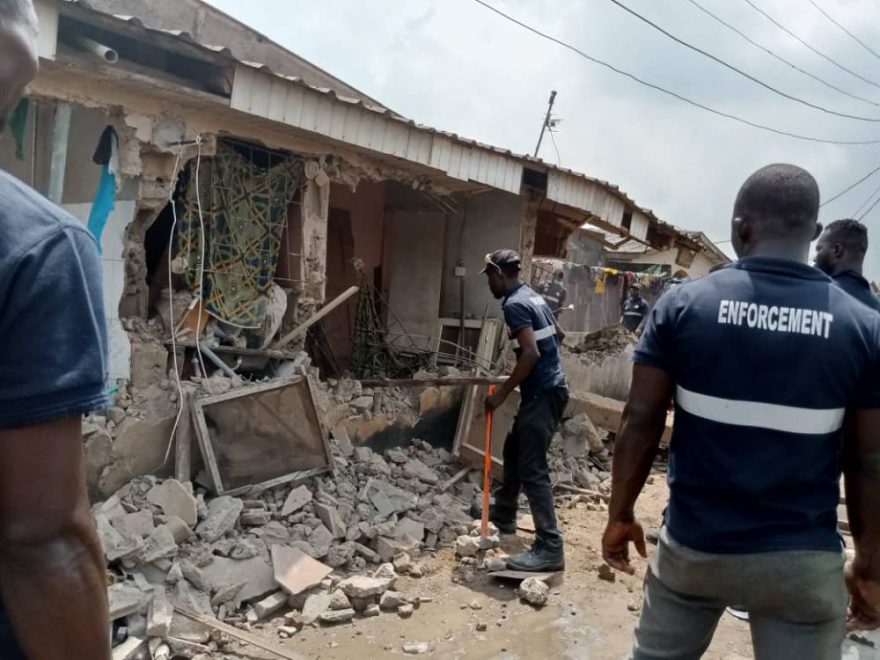 The ongoing demolition exercise by the Lagos State Building Control Agency started at 10:20 a.m. on Saturday and commenced with the Lateef Jakande Train Station.