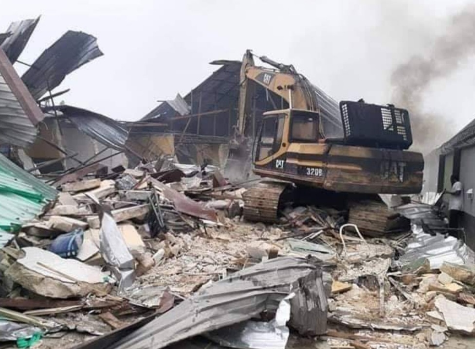 Rivers State Governor, Nyesom Wike, on Sunday supervised the demolition of two hotels in Eleme and Onne for violating the Executive Order 6 of the state government, which banned the operation of hotels in the state.