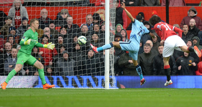 City were bidding for a fifth successive derby win and took the lead in the eighth minute as Sergio Aguero tapped in David Silva’s cross.