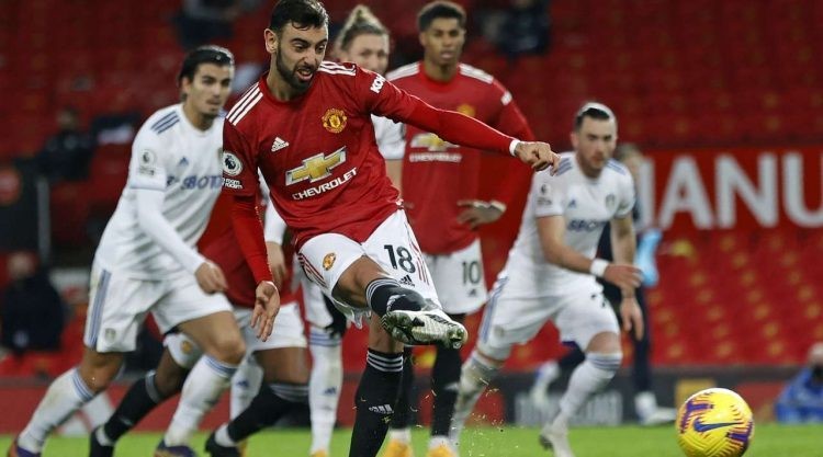 Twenty minutes into the game, United made it 3-0 through a goal from Bruno Fernandes, who pounced on a loose ball inside the box and beat the goalkeeper with a shot into the bottom left corner.