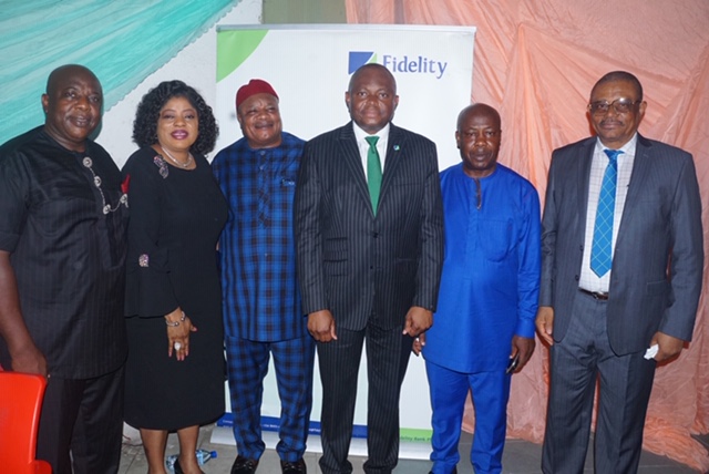 Managing Director, Jude Ringo Commercial Enterprises Ltd and Immediate past president, Association of Progressive Traders, Dr. Jude Ringo Okeke; Executive Director, Lagos and South West, Fidelity Bank Plc, Nneka Onyeali – Ikpe; President, Auto Spare Parts and Machinery Dealers Association (ASPAMDA); Chief Daniel Offorkansi; MD/CEO, Fidelity Bank Plc, Nnamdi Okonkwo; President, Association of Progressive Traders, (APT), Chief Eric Ilechukwu; Director, Fidelity Bank Plc, Chief Charles Umolu when Fidelity Bank met with Business Leaders, Trade Groups, Affiliates, Units of ASPAMDA Market, Trade Fair Complex, Lagos .. Thursday