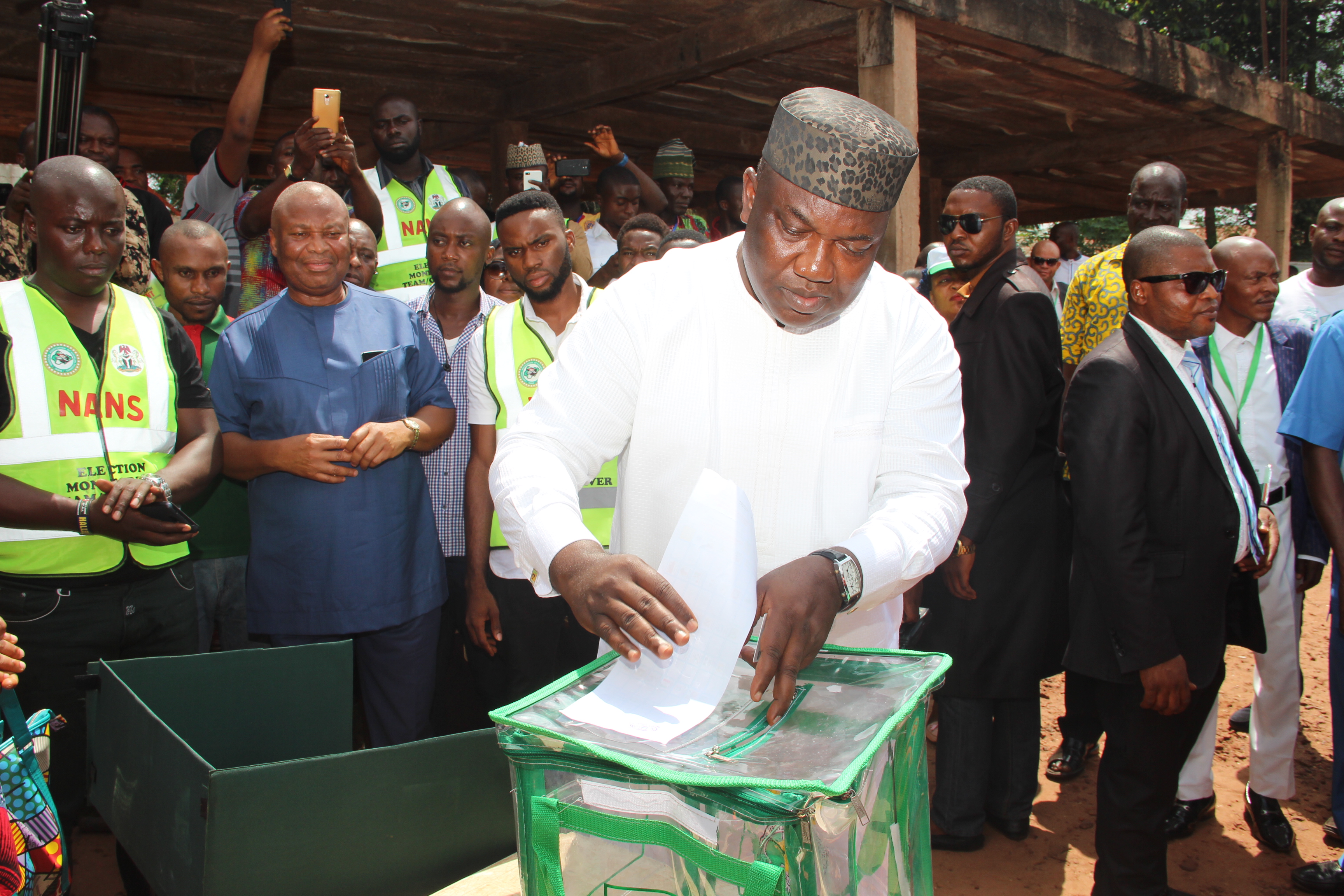 Enugu Local Govt. Elections: Gov. Ifeanyi Ugwuanyi of Enugu State voting at his Amube Ohom Ward 2 polling station in Orba, Udenu L.G.A of the state, on Saturday