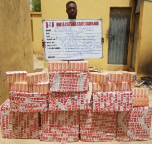 In Katsina state, no less than 1,730 bottles of codeine-based syrup were seized from a suspect, Bishir Sa’adu in Katsina metropolis on Sunday 9th April just as Muhamadu Yusuf was equally arrested same day with 8,000 capsules of tramadol inside a commercial bus along Kano – Katsina road. In the same vein, NDLEA operatives in Kaduna on Thursday 13th April raided a clandestine laboratory where mist potassium citrate was being produced in a residential apartment at 16 Sabon Gari, Zaria. The owner of the lab, Christopher Agodi was arrested and 102 cartons containing 2,448 bottles of the substance recovered. While a suspect, Salisu Abdullahi, 25, was arrested along Abuja-Kaduna road with 11.7kg cannabis concealed in two jerrycans, which he was moving from Port Harcourt to Kano, operatives also on Saturday 15th April nabbed one Atiku Abubakar, 22, on the same road with 50 blocks of cannabis weighing 28kg while travelling from Lagos to Shinkafi in Zamfara state in a commercial bus.