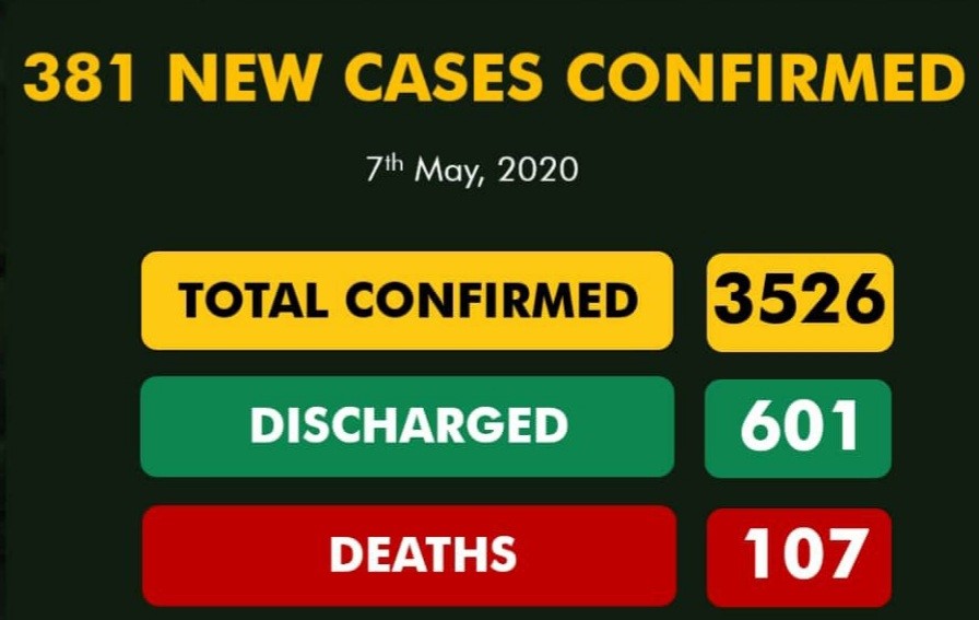 Nigeria has recorded its highest coronavirus cases of 381 in a single day, taking its total to 3,526.