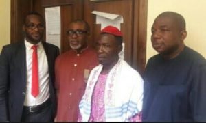 Earlier, his lawyer, Mr Ifeanyi Ejiofor, his three sureties, the Chairman, South East Senate caucus, Sen. Enyinnaya Abaribe, a Jewish High Chief Priest, Immanuu-El Shalom and a Chartered Accountant residing in Abuja, Tochukwu Uchendu signed his bail bond.