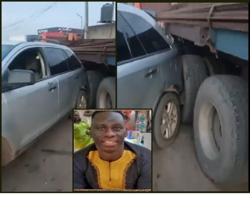 “To God be the glory, another death escaped by Grace and Mercy of God. Me and my friend SM were at Enyo Filling Station after Ojodu Berger bus stop to get fuel on Wednesday, October 2, 2024, around 6 p.m. when this MACK truck fully loaded with iron, with registration number LND 470 XX, left the road and crushed my car beyond repairs. Thank God for life,” he stated.