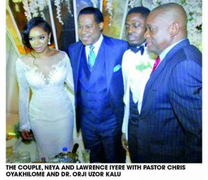On Thursday, all roads led to the Catholic Church of Assumption, Ikoyi Lagos State, the venue for the solemnization and the reception at the prestigious Oriental Hotel, Victoria Island. It was a day the former governor of Abia State and a business tycoon, Dr. Orji Uzor Kalu, delightfully hosted the high and mighty of Nigerian society, when his delectable daughter, Catherine Ogbonneya tied the knot with her heartthrob, Lawrence Iyere.