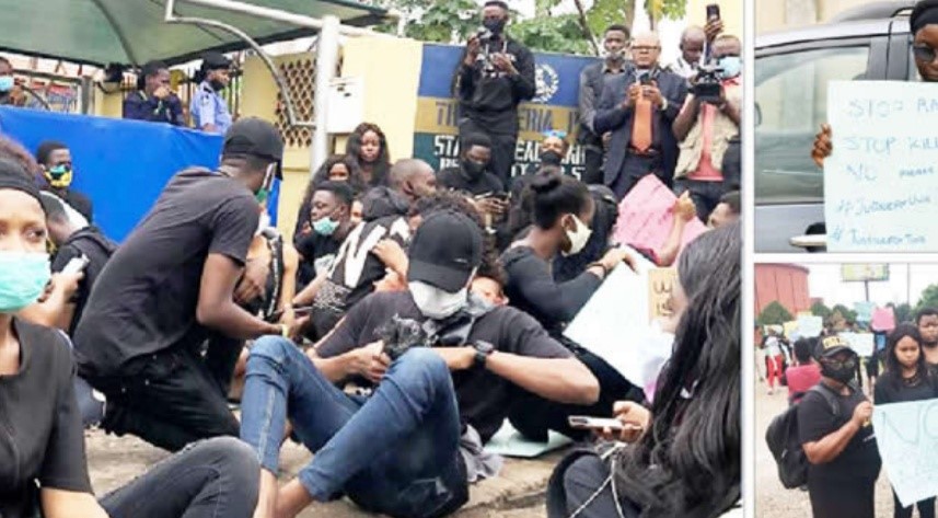 Some Nigerians and celebrities, on Monday, staged an indoor protest to demand a stop to rape and extrajudicial killings in the country.