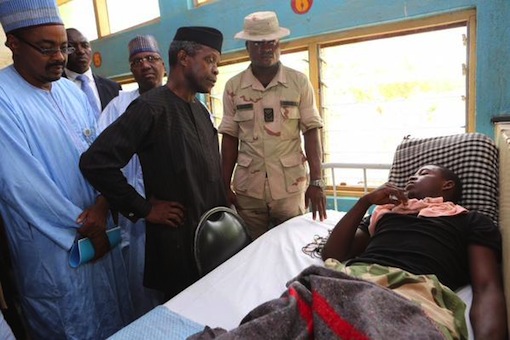 During his visit to the State, Prof. Osinbajo visited some of the wounded soldiers and other victims being treated at the Federal Medical Center, Yola. He was accompanied by the Governor of Adamawa State, Senator Bindow Jubrilla and other dignitaries.