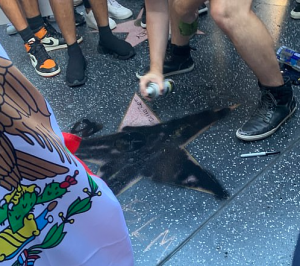 Protesters used black spray paint to completely desecrate the star. Someone also placed a plastic bag full of dog poop on top of the defaced star. Some crossed out Trump’s name, others drew male genitals or wrote various curse words.