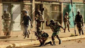“You said you were better than Mugabe — you are the picture of Mugabe,” shouted one young male protester wearing a white T-shirt. “We need security for the people.”