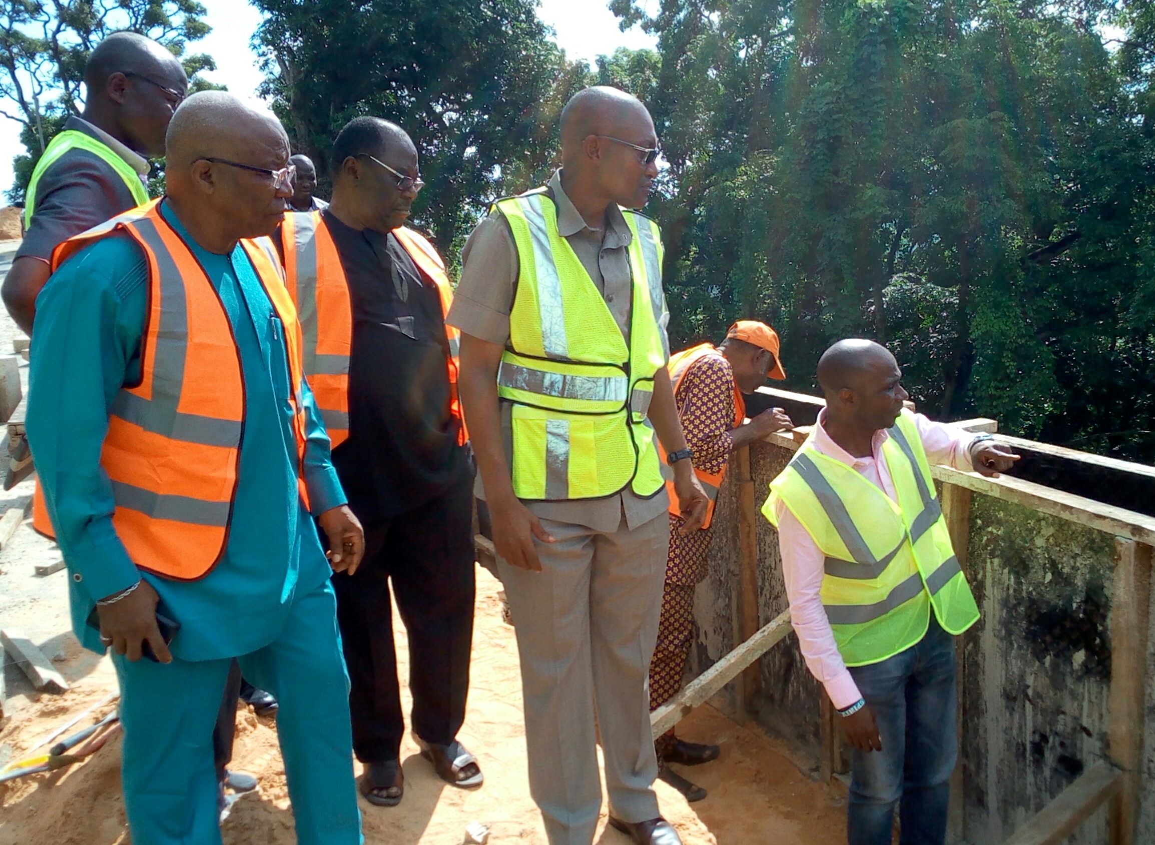 R-L: Chairman of Nigeria Society of Engineers (NSE), Enugu State chapter, Engr. Ifeanyi Ofili; Commissioner for Works and Infrastructure, Enugu State, Engr. Greg Nnaji; NSE’s Vice Chairman, Engr. Festus Ozoemene; Chairman of Performance Investigation Failure Analysis Committee (PIFAC) of the association, Engr. Dr. Victor Chiwuzie (middle), others, during the assessment tour of the ongoing erosion control work at the Milliken Hill road in Enugu, yesterday.
