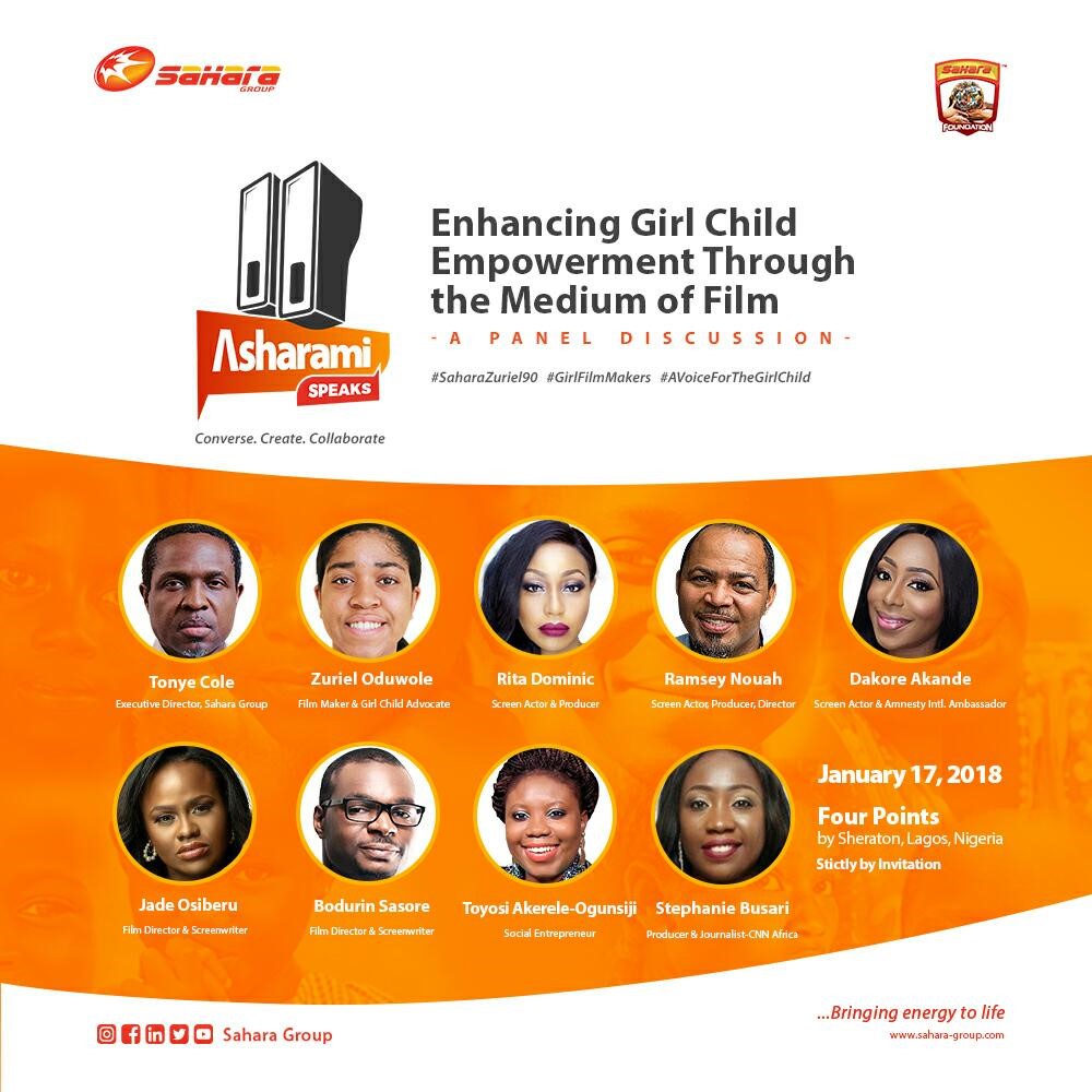 “Society doesn’t think girls are equal to boys. This is so sad and unfair. I like the fact that Sahara Group sees some value in what I am doing with Girls Education across the world and is willing to amplify it with the first #AsharamiSpeaks Panel Sessions” says Zuriel Oduwole the fifteen year old speaker on the panel, Co-Founder of DUSUSU (Dream Up, Speak Up, Stand Up) and one of the world’s youngest female education advocates and film makers.