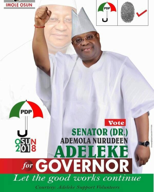 Adeleke will contest the governorship election with the candidate of the All Progressives Congress (APC), Alhaji Gboyega Oyetola.