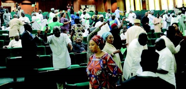 While the protest lasted, the opposition lawmakers, who wielded the national flag, waved them repeatedly, chanting, “all we are saying, save Nigeria now” and echoing “APC shame”, while their APC counterparts watched and responded with “APC Change.” In the midst of this, the Speaker conferred with Principal Officers, who had approached him, and emerged to cede the floor to Minority Leader, Leo Ogor, who immediately requested the House to dissolve into executive session, which was granted.