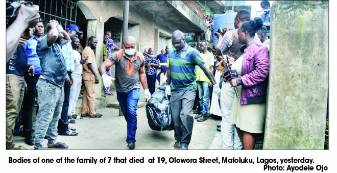 Tragedy struck in the early hours of yesterday as the lifeless bodies of a family of seven and that of a pregnant woman were discovered in their one room apartment in Lagos.