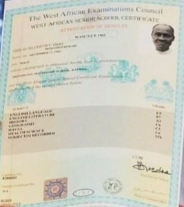 “Today I received the attestation and confirmation of my 1961 West African School Certificate (WASC) Examination result from the Registrar of the West African Examinations Council.