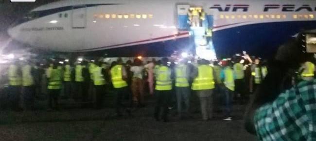The evacuees, who departed OR Tambo International Airport, Johannesburg, around 4p.m aboard an Air Peace Boeing 777 aircraft, touched down at 9:34pm on Wednesday.
